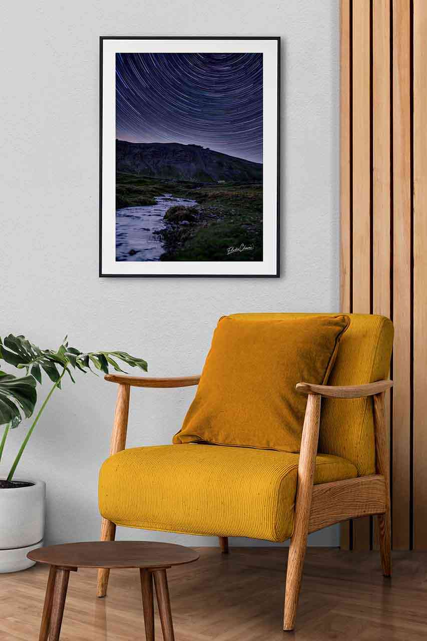 Ce tableau incarne le calme des nuits d’altitude, loin de toute agitation. Une œuvre idéale pour inviter à la contemplation et apporter une touche d’évasion et de profondeur à votre intérieur.
